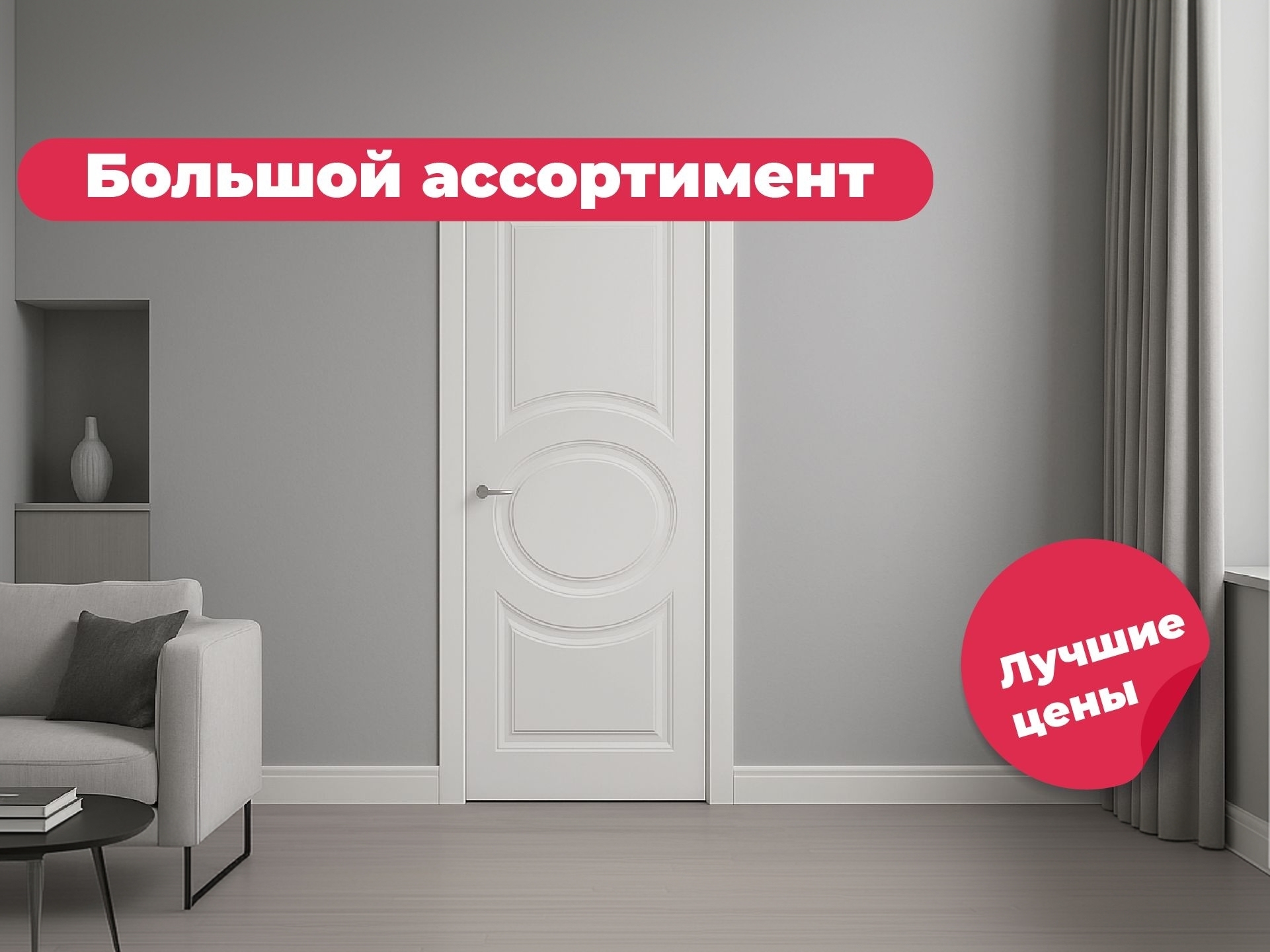 - широкий ассортимент входных и межкомнатных дверей;